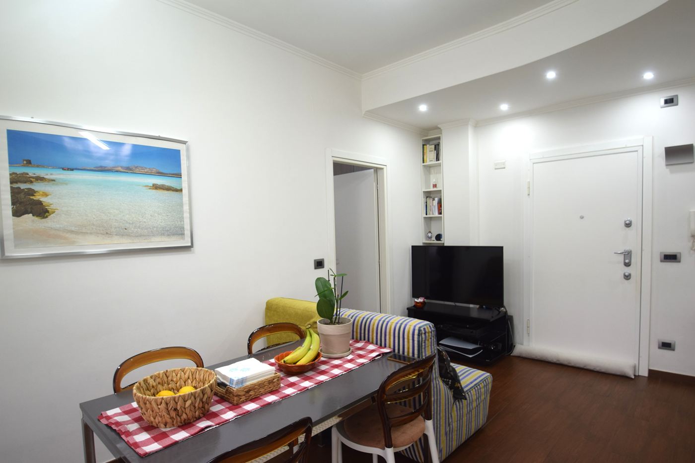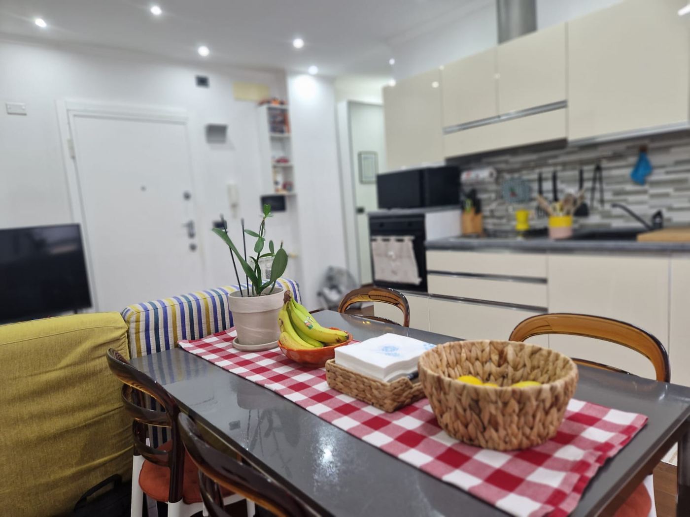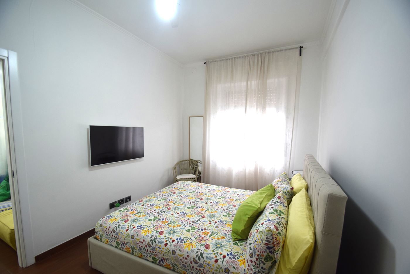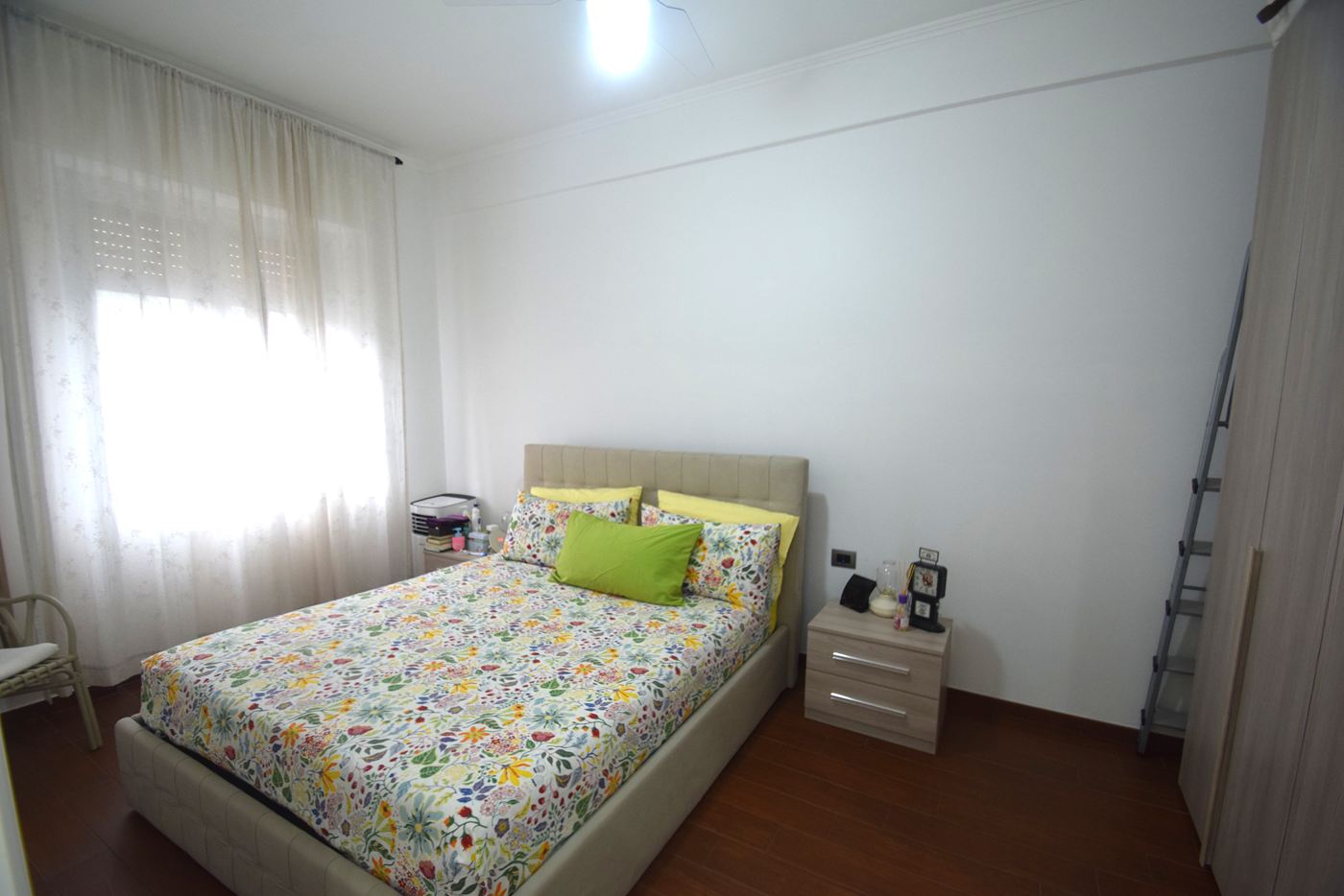4 vani ristrutturati posti al penultimo piano di un condominio con ascensore composti da: Ingresso openspace con divano e tv frontale, cucina con tavolo e sedie con portafinestra che permette l'accesso al balcone vivibile con tenda da sole; camera matrimoniale con lampada led a soffitto corredata da pale comandate con telecomando, 1 bagno con doccia e un armadio a vetri di fronte all'ingresso del bagno uso dispensa. Gli infissi sono in Pvc con doppi vetri, le tapparelle sono in plastica ( quella del bagno elettrica), porta blindata, illuminazione con faretti sia in ingresso che sopra alla cucina, parcheggio con sbarra riservato ai tre civici del complesso. L'appartamento si trova in una zona centrale di Prà raggiungibile a piedi attraverso il parcheggio di via Cordanieri (ex Elah), vicino a negozi. stazione ferroviaria, autobus e a tutti i servizi. I mobili sono compresi nel prezzo.
