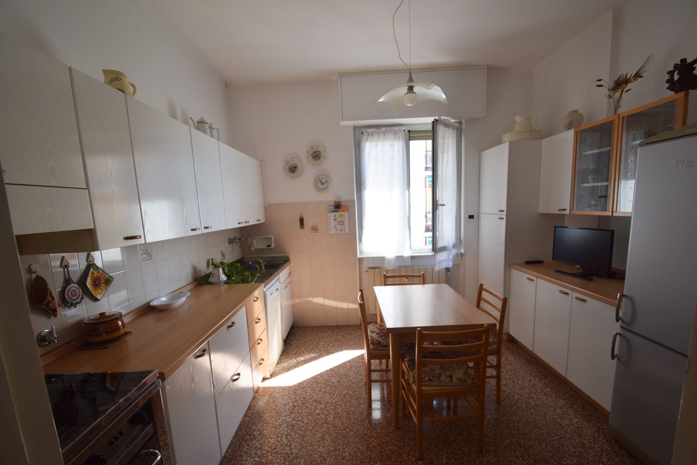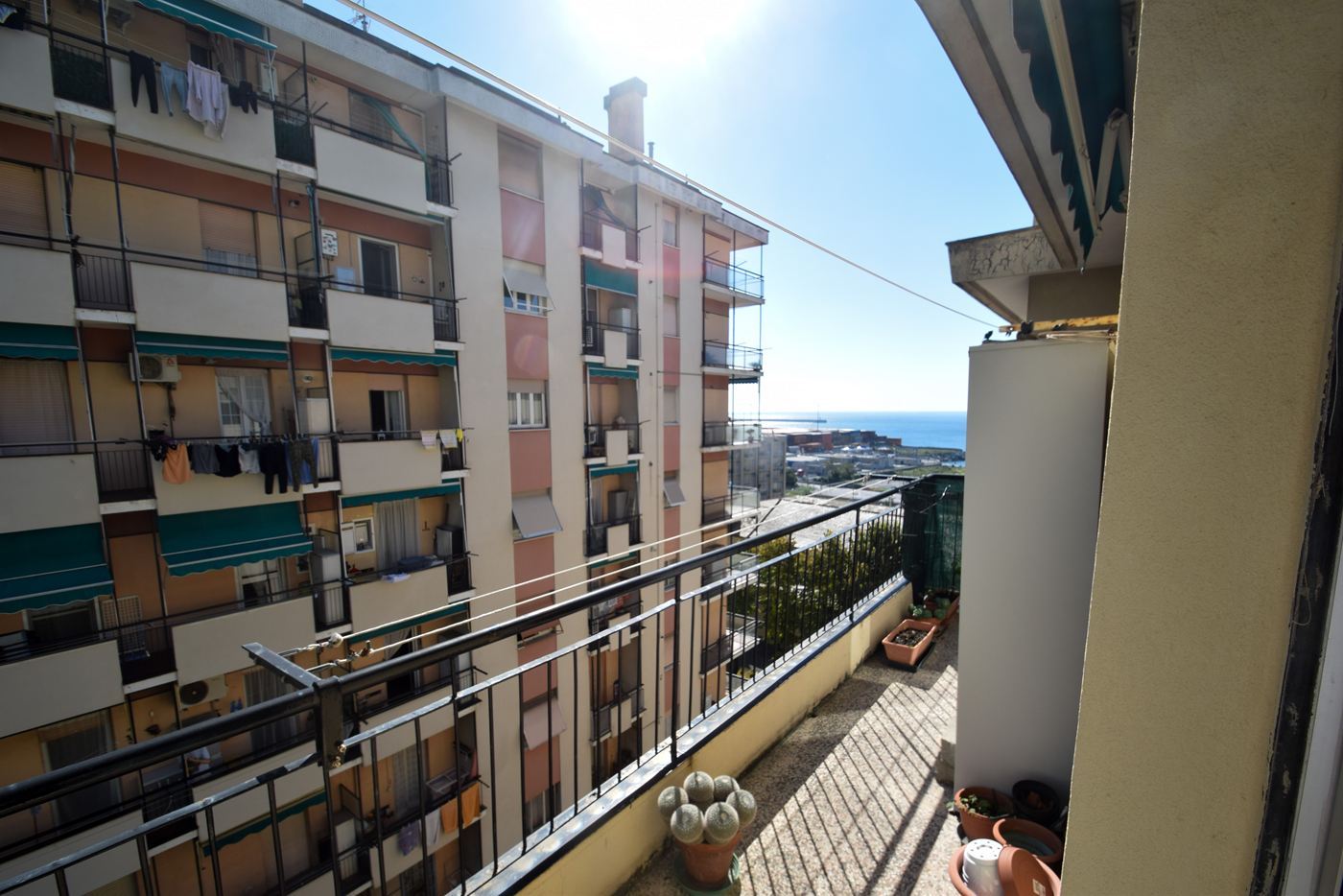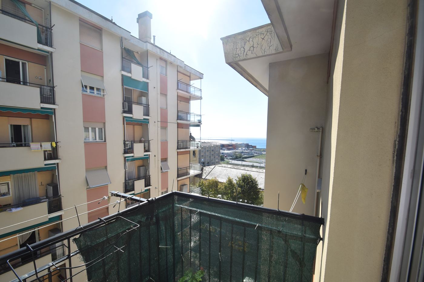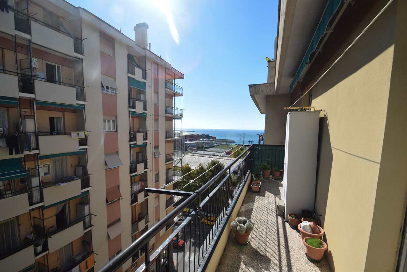 VOLTRI (Via Ventimiglia): luminoso cinquevani posto al penultimo piano con lunga balconata e vista mare. L'appartamento è composto da: ingresso, cucina abitabile con ripostiglio, camera matrimoniale e sala entrambe con uscita sulla balconata, bagno con finestra. Porta blindata e tapparelle elettriche. L'appartamento si trova in zona centrale, comodissima ai negozi, ai supermercati, alle scuole ed a poca distanza dalla stazione, dall'Aurelia e dalla più comoda fermata dell'autobus.