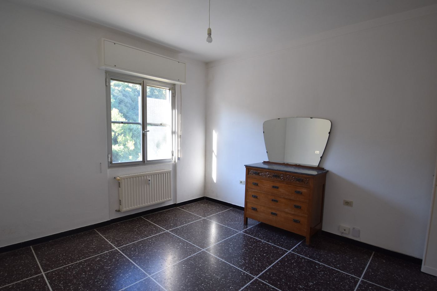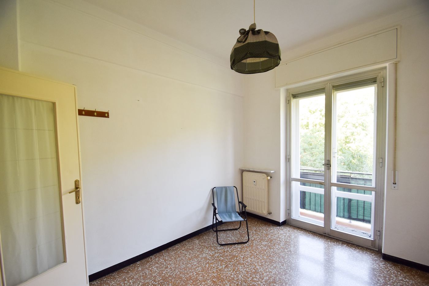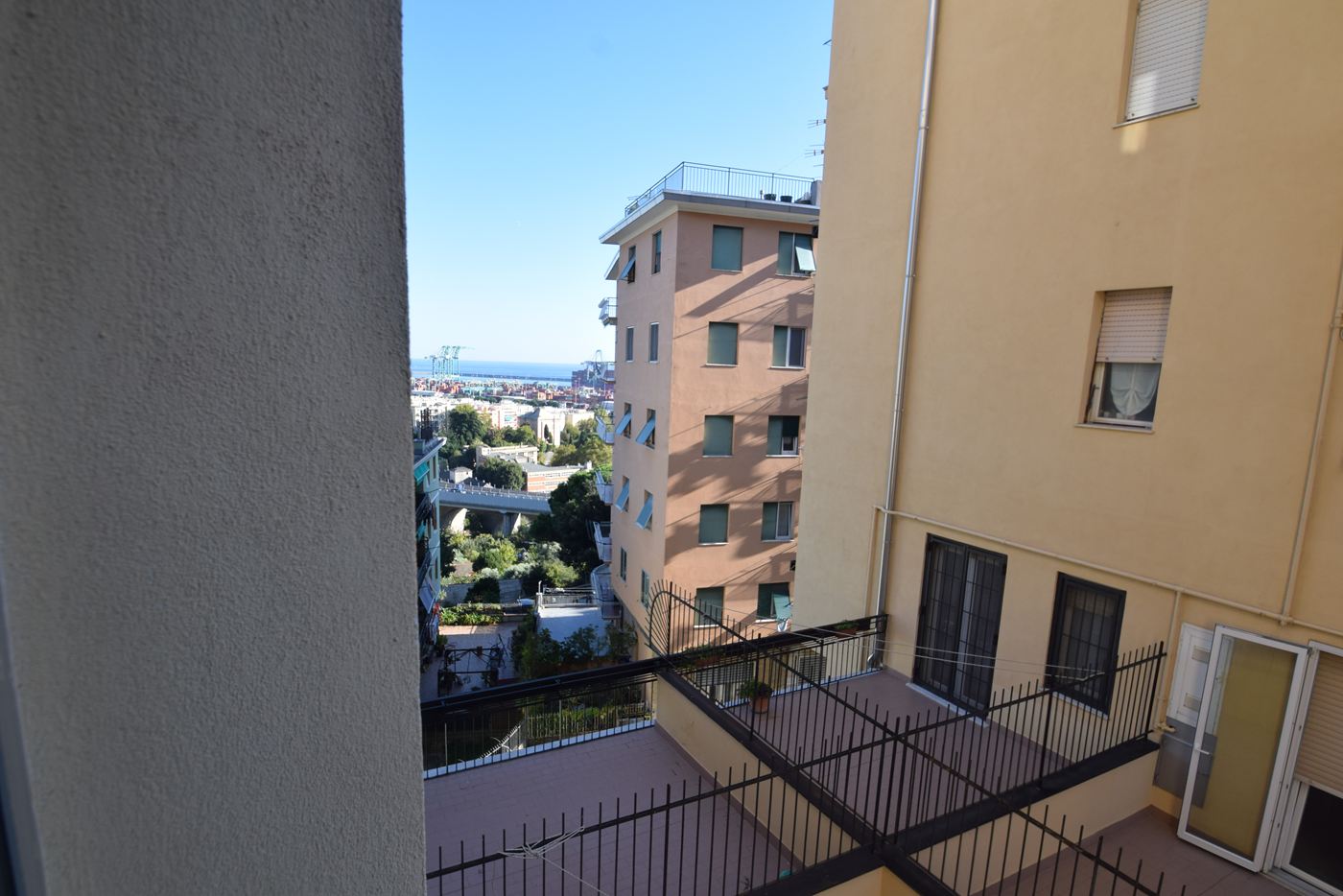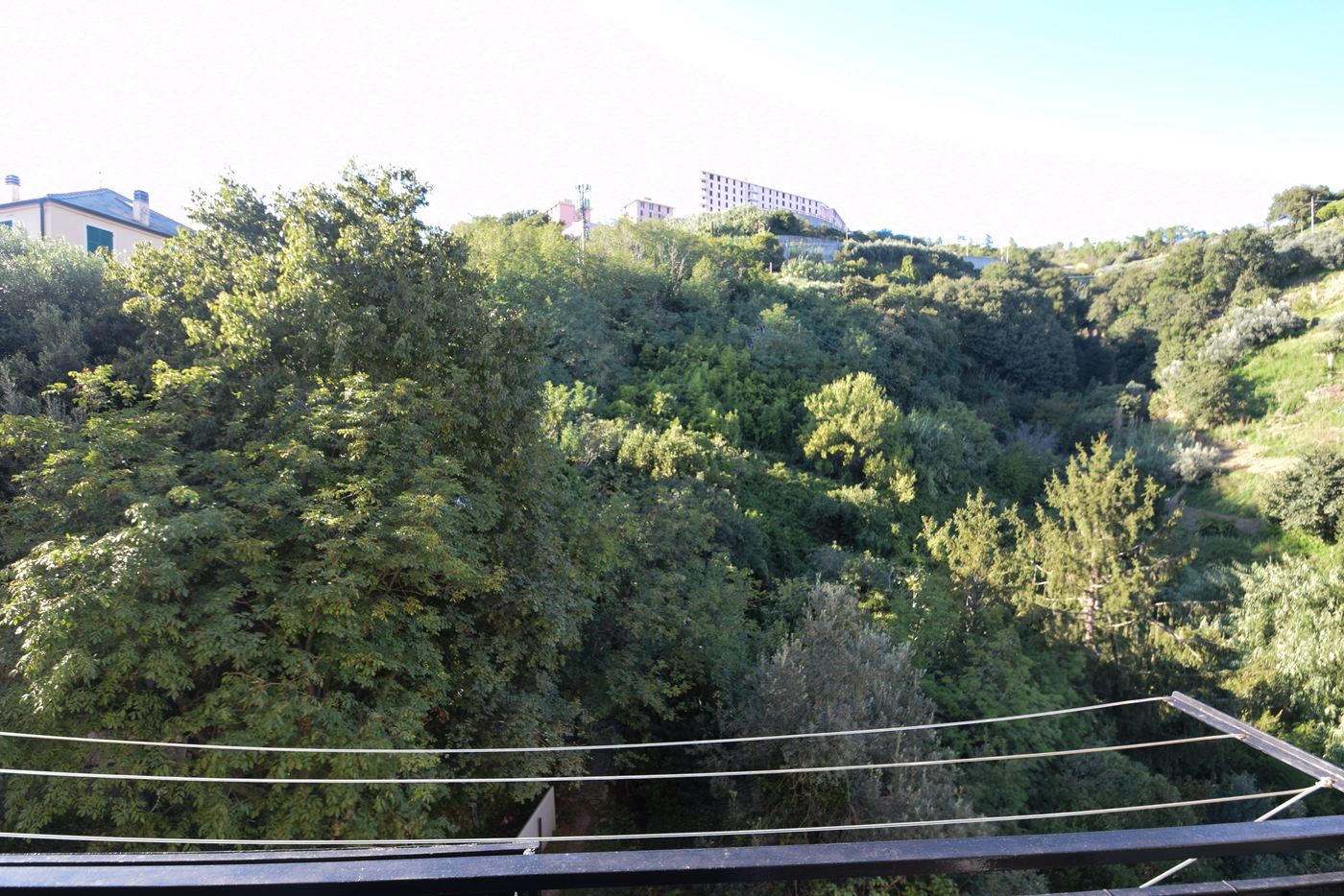 PRA' (Via Murtola alta): luminoso cinque vani in buone condizioni con balcone e vista nel verde. L'appartamento è composto da: ingresso in corridoio, cucina abitabile, ampia camera matrimoniale, seconda camera con balcone, bagno con finestra, ripostiglio. Ascensore, basse spese di amministrazione, zona tranquilla e silenziosa che non sente l'autostrada. Posto auto condominiale chiuso da sbarra. Poche decine di metri distano il palazzo dalla più vicina fermata dell'autobus collinare.