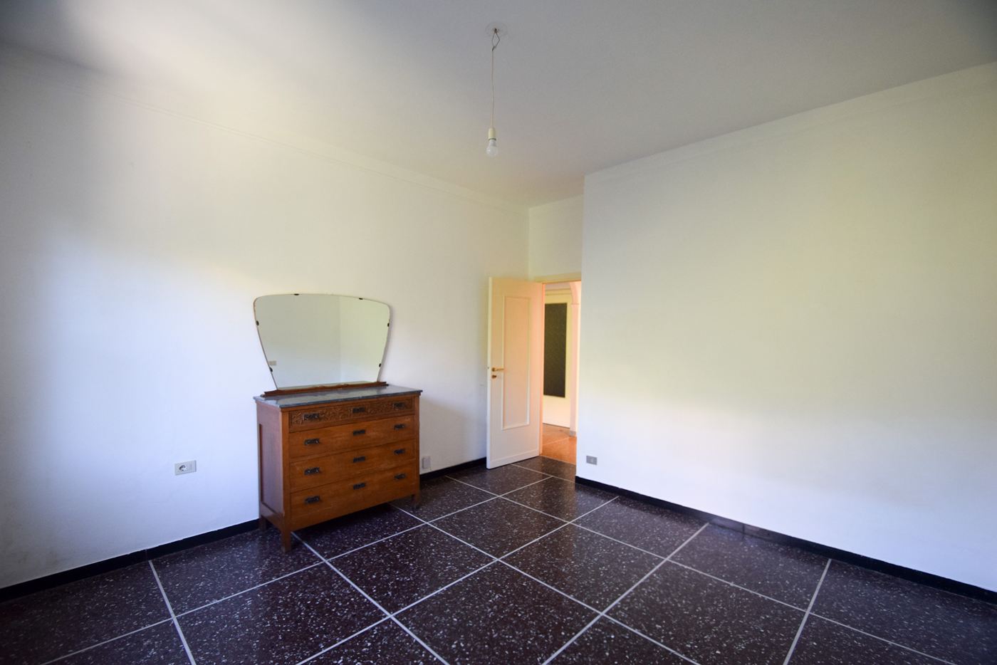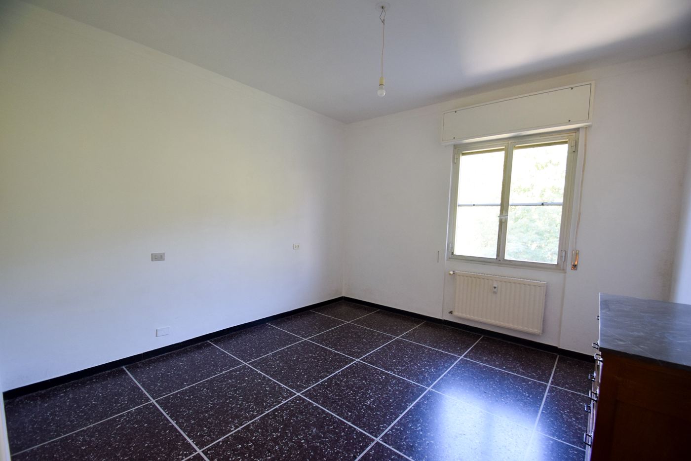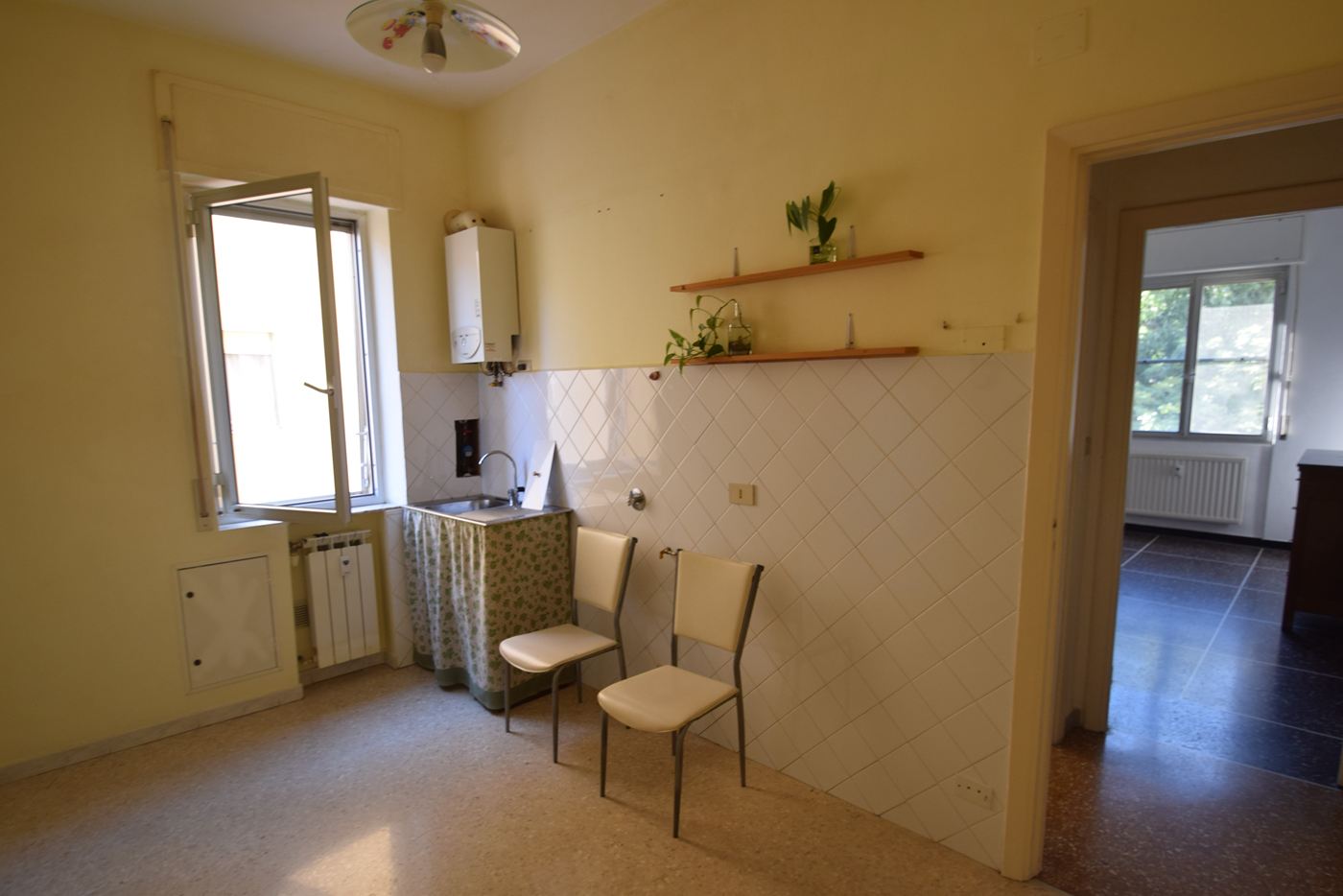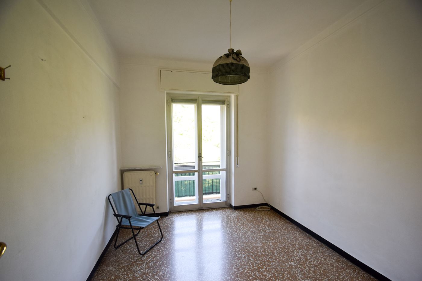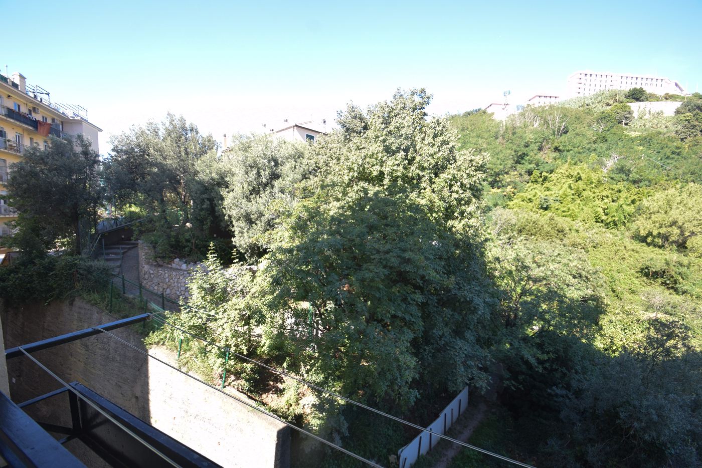 PRA' (Via Murtola alta): luminoso cinque vani in buone condizioni con balcone e vista nel verde. L'appartamento è composto da: ingresso in corridoio, cucina abitabile, ampia camera matrimoniale, seconda camera con balcone, bagno con finestra, ripostiglio. Ascensore, basse spese di amministrazione, zona tranquilla e silenziosa che non sente l'autostrada. Posto auto condominiale chiuso da sbarra. Poche decine di metri distano il palazzo dalla più vicina fermata dell'autobus collinare.