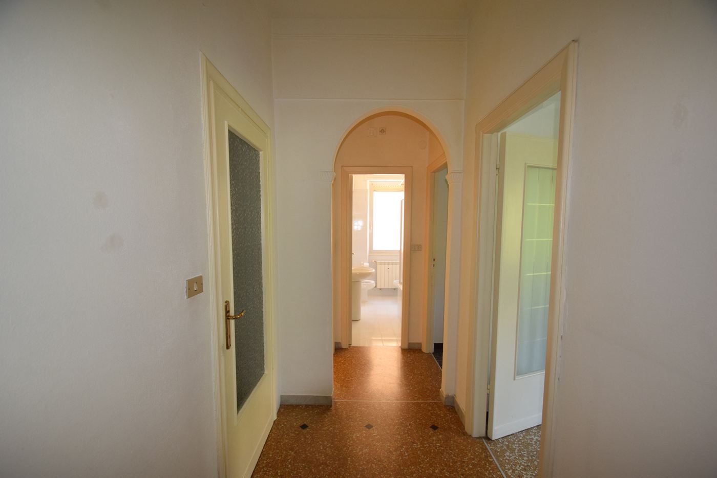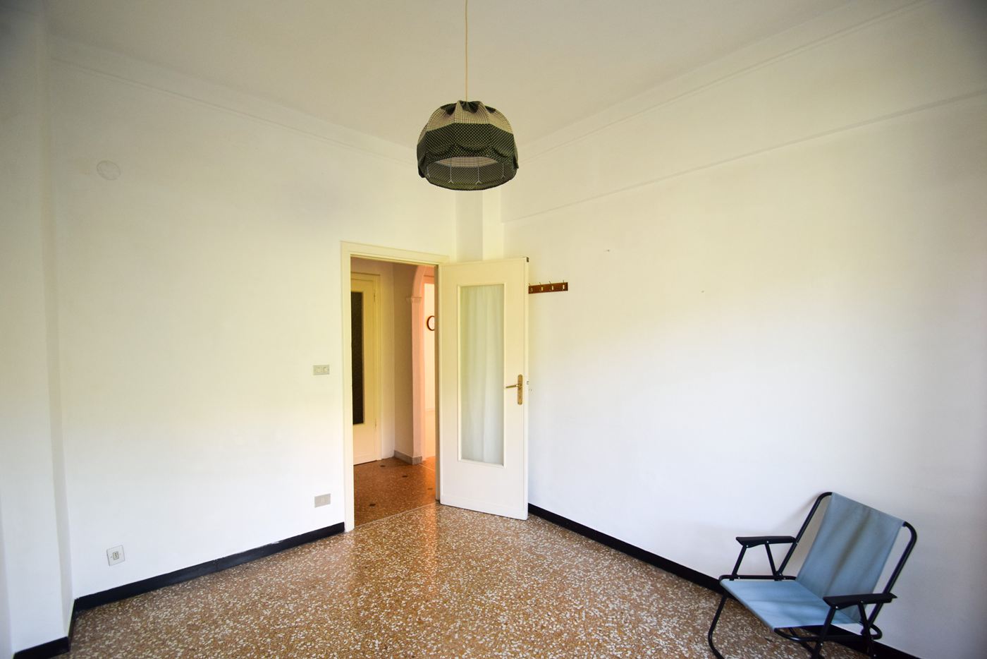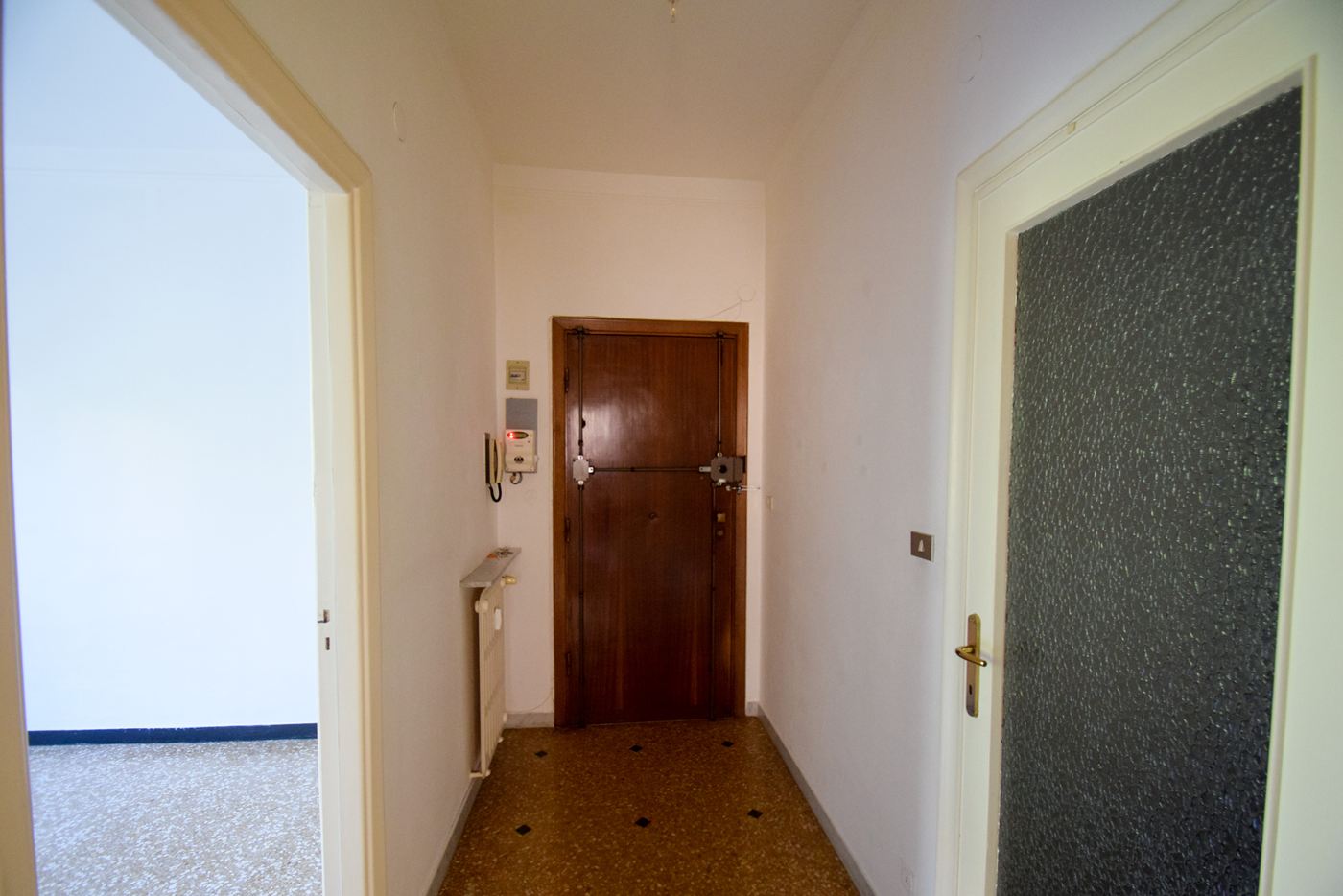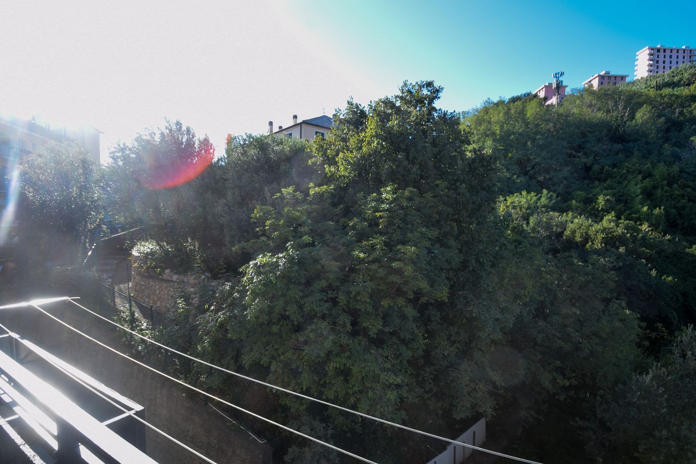 PRA' (Via Murtola alta): luminoso cinque vani in buone condizioni con balcone e vista nel verde. L'appartamento è composto da: ingresso in corridoio, cucina abitabile, ampia camera matrimoniale, seconda camera con balcone, bagno con finestra, ripostiglio. Ascensore, basse spese di amministrazione, zona tranquilla e silenziosa che non sente l'autostrada. Posto auto condominiale chiuso da sbarra. Poche decine di metri distano il palazzo dalla più vicina fermata dell'autobus collinare.