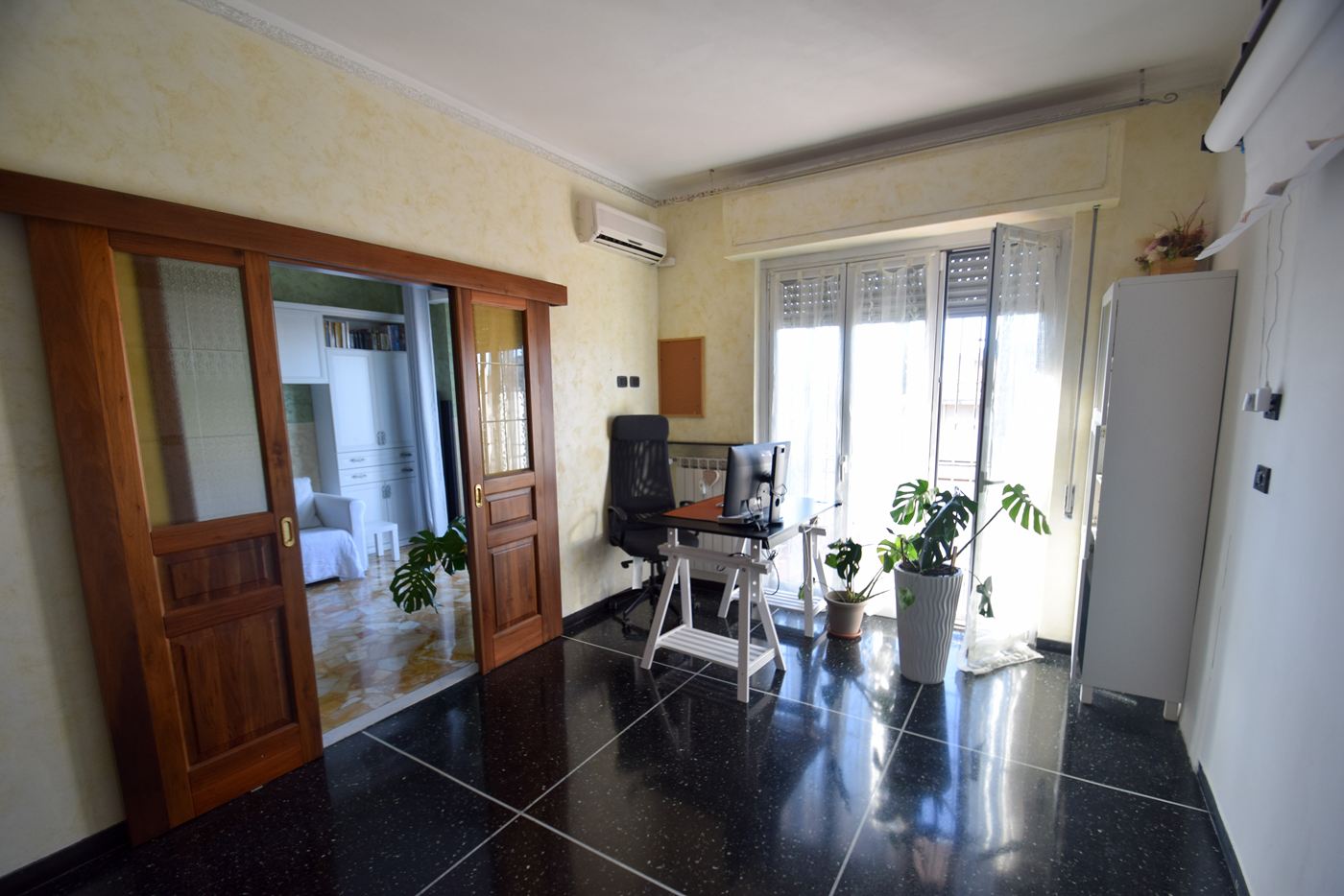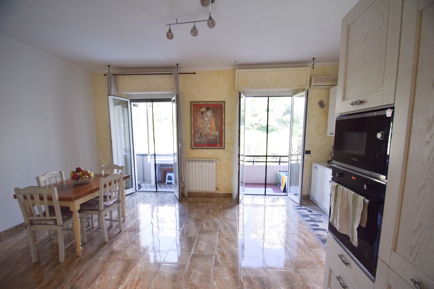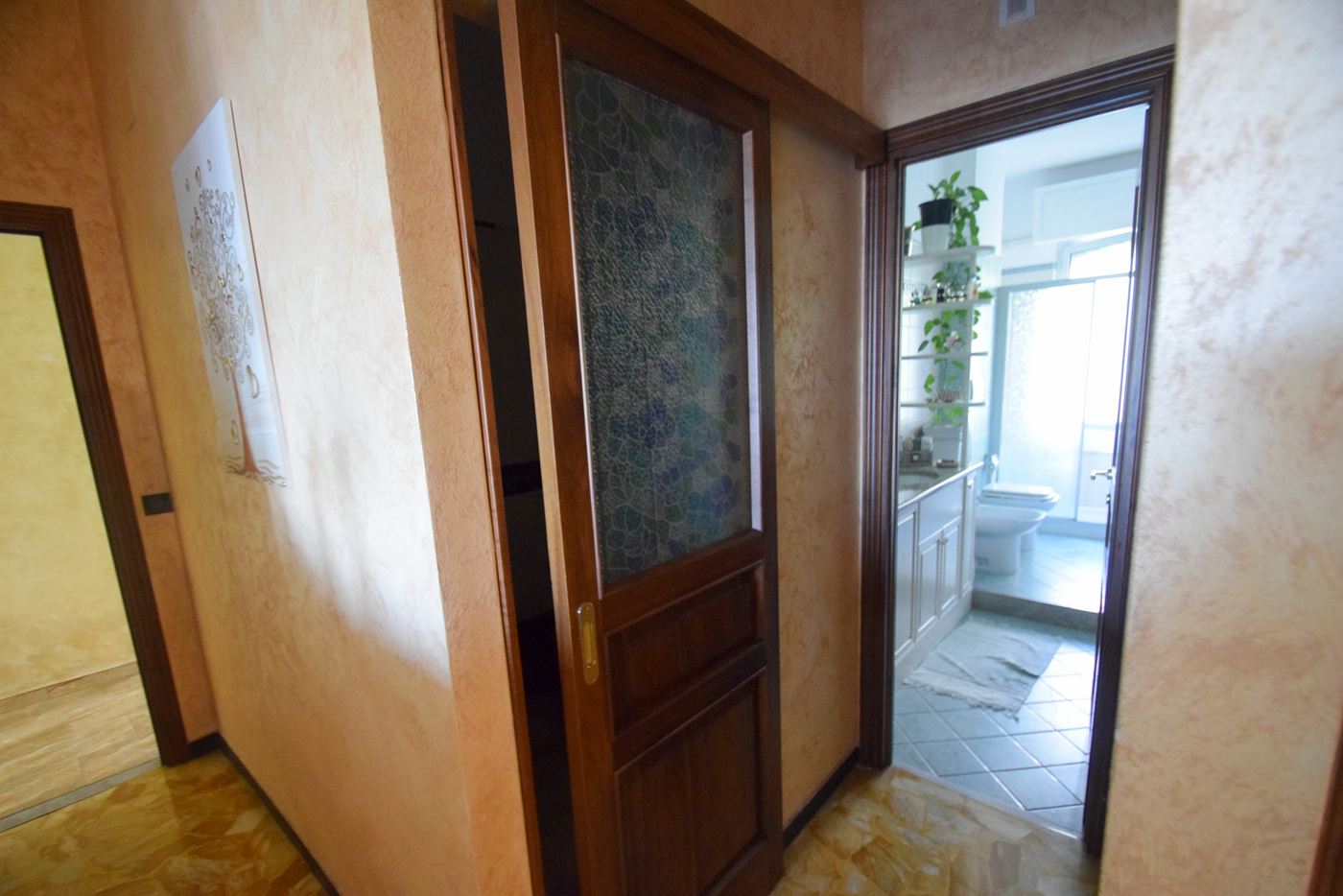 PRA' (Diano Marina) bellissimo settevani con doppi servizi, mq 120, posto al penultimo piano con ascensore con balconata lato sud e vista mare panoramica. L'appartamento è composto da: ingresso con corridoio, sala con balconata, tre camere da letto, grandissima cucina con doppia uscita sui balconi, doppi servizi, tre balconi a nord verso la campagna. Aria condizionata, doppi vetri, porta blindata, infissi in alluminio, pavimenti in marmo, impianti nuovi, porte nuove, riscaldamento centralizzato con termovalvole. Postauto di proprietà esclusivo chiuso da sbarra.