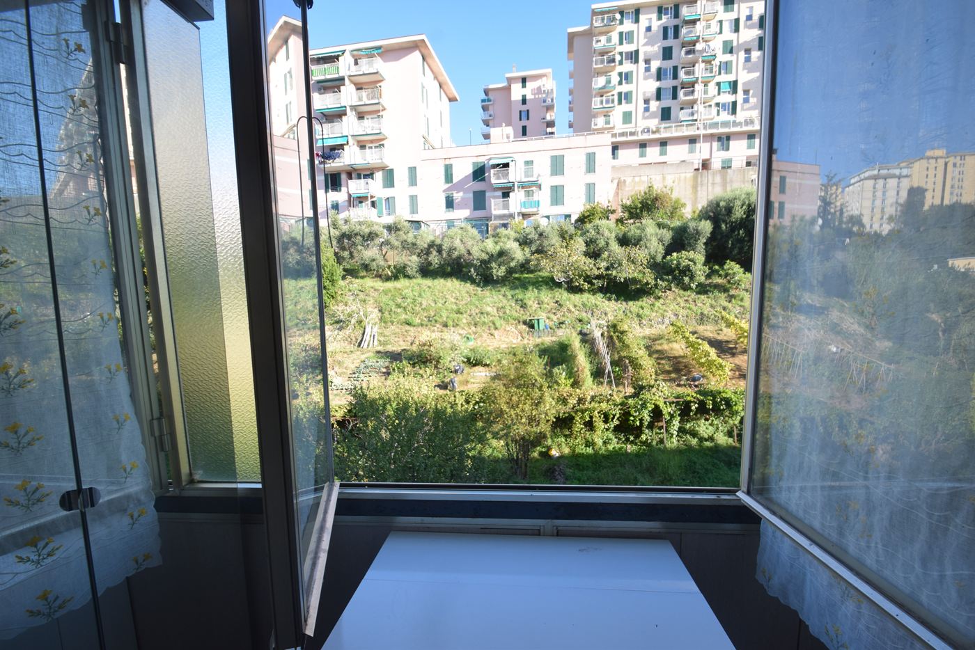 PRA' (Via Murtola alta): luminoso cinque vani in buone condizioni con balcone e vista nel verde. L'appartamento è composto da: ingresso in corridoio, cucina abitabile, ampia camera matrimoniale, seco