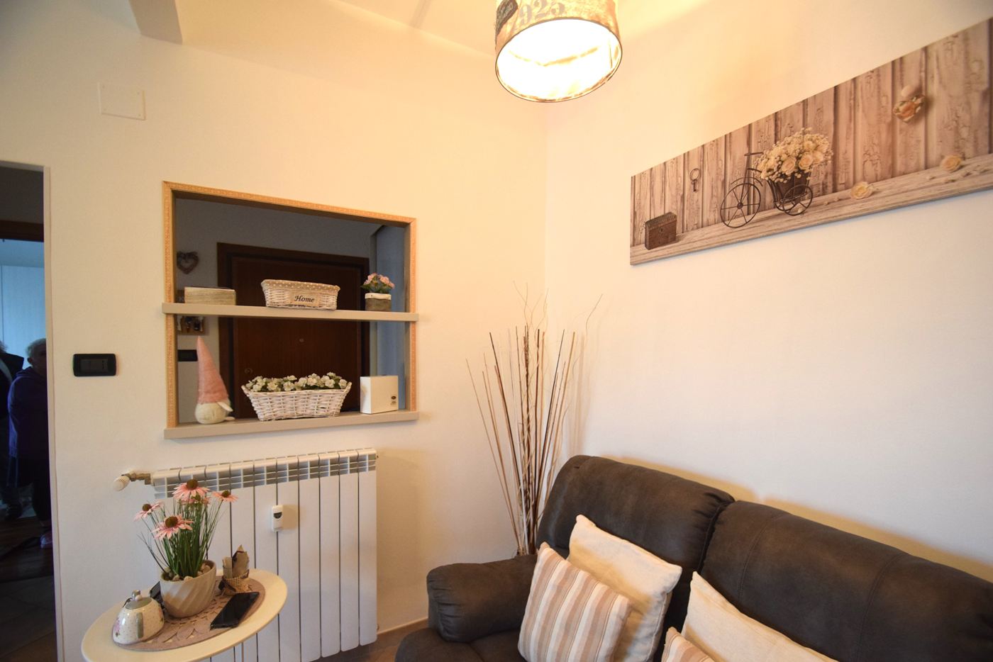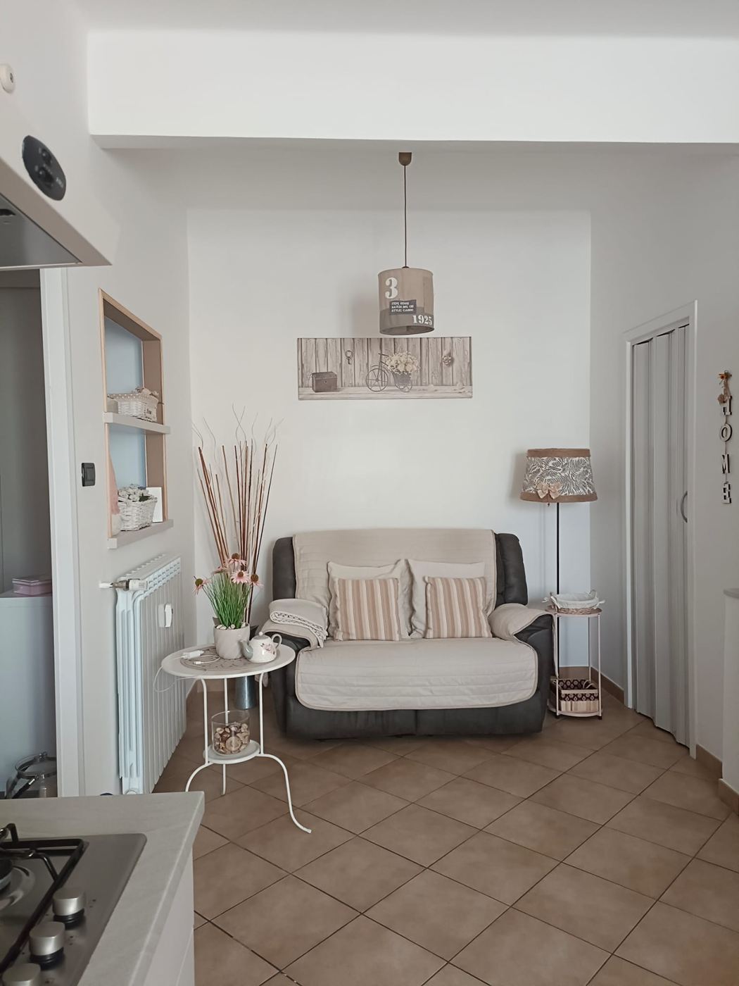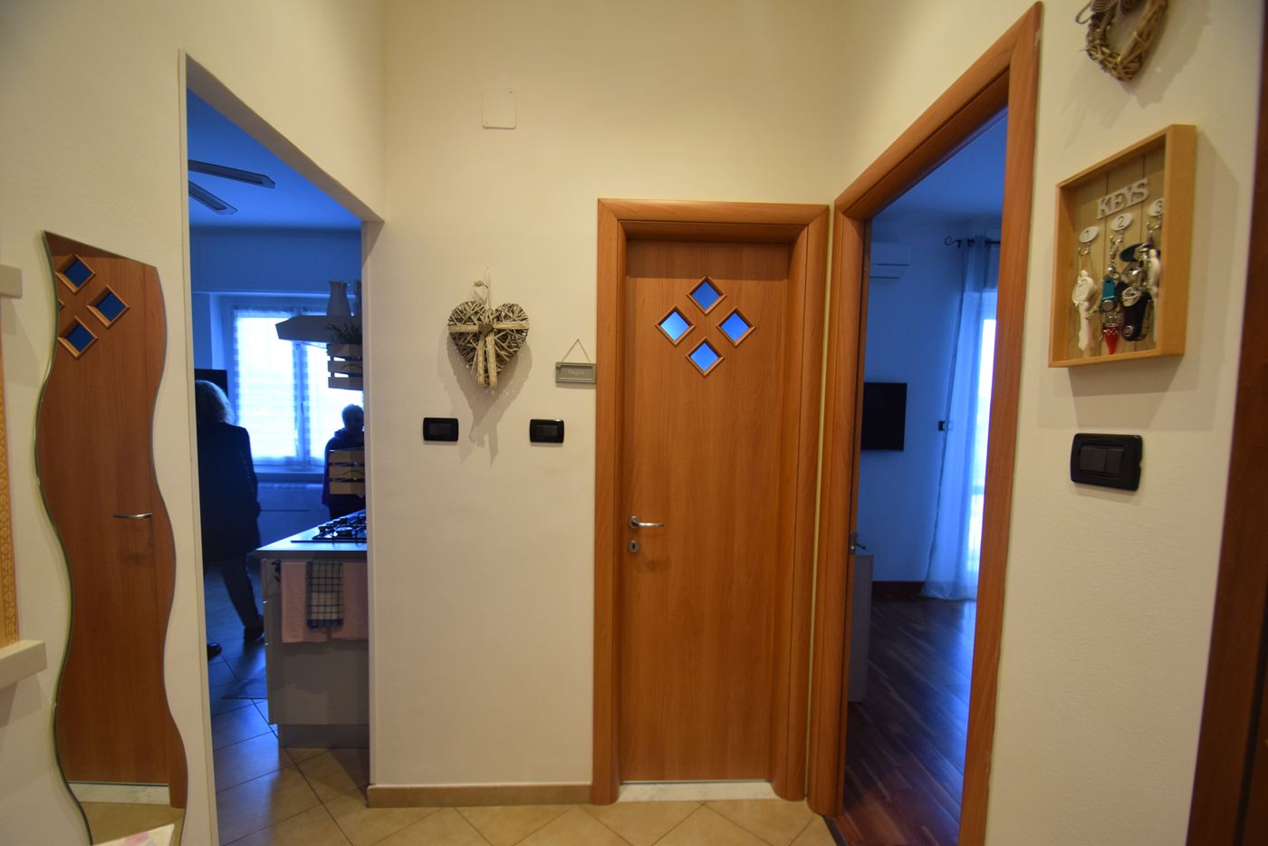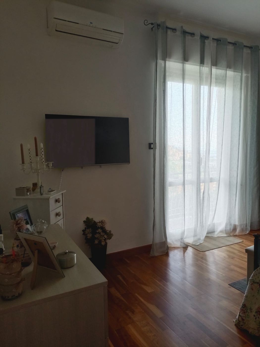 4 vani ristrutturati posti al penultimo piano di un condominio con ascensore composti da: Ingresso openspace con divano e tv frontale, cucina con tavolo e sedie con portafinestra che permette
