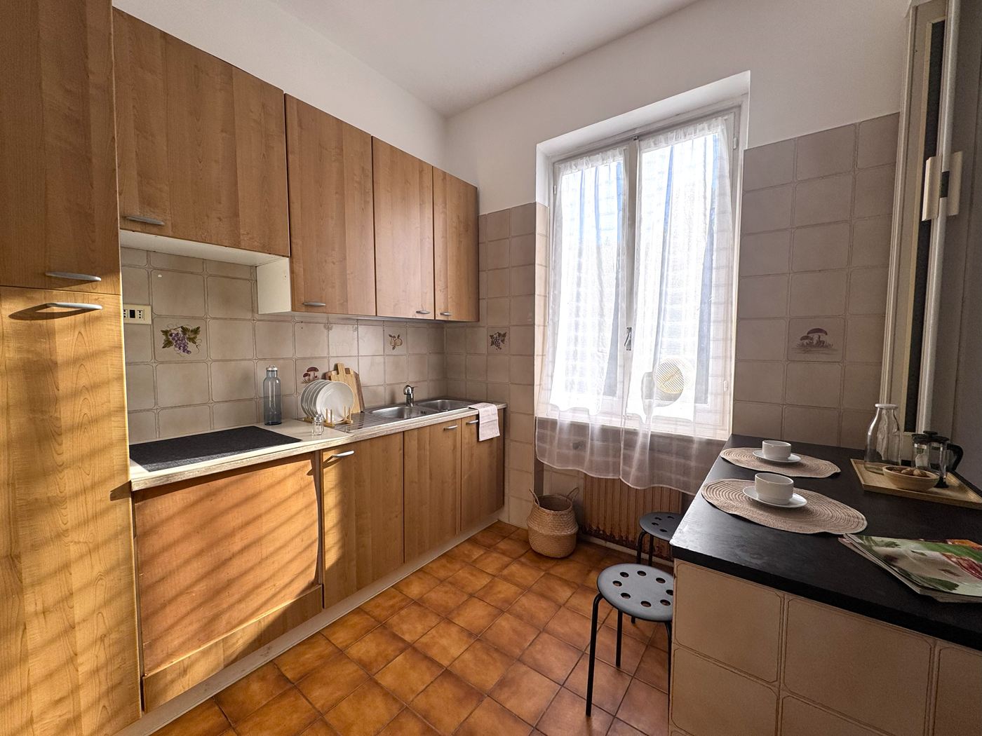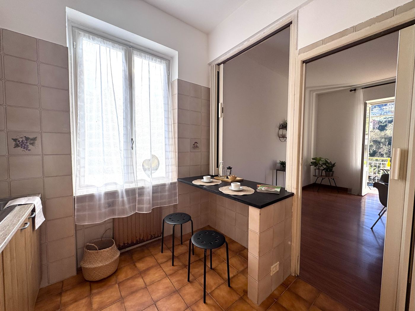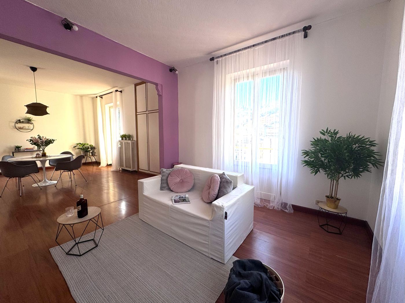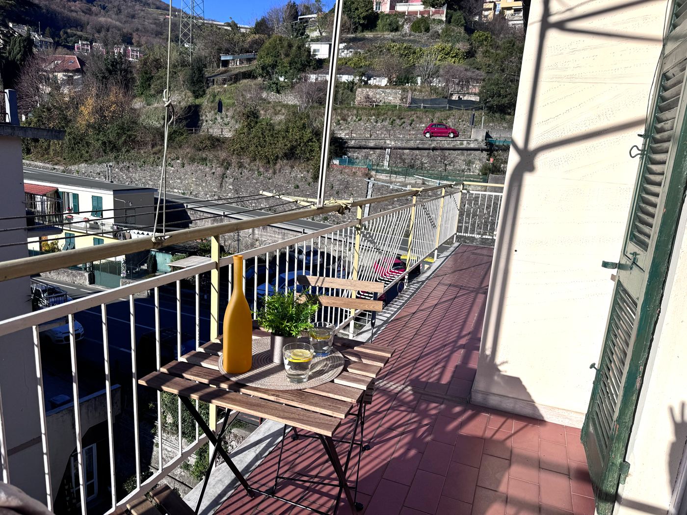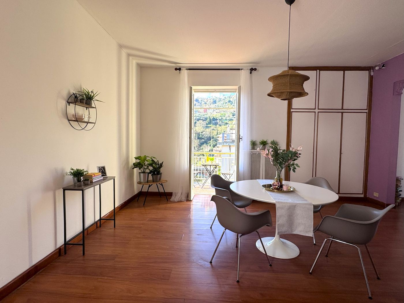 MELE (Località Fondocrosa) in piccola palazzina anni 70 con soli 4 appartamenti abbiamo ampissimo 6 vani posto al secondo ed ultimo piano (senza vicini sullo stesso pianerottolo), esposto su quattro orientamenti, suddiviso in: ingresso, cucina all' americana con finestra, due camere da letto (una con finestra e balcone), salone doppio con caminetto con finestra e due portefinestra con accesso alla balconata, ampia mansarda soprastante ad uso ripostiglio e postauto in uso esclusivo. Riscaldamento autonomo.